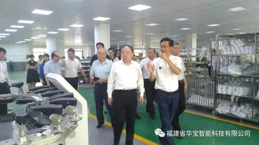 調研組來到華寶科技的制鞋智能化精品車間參觀調研,并指導相關工作。